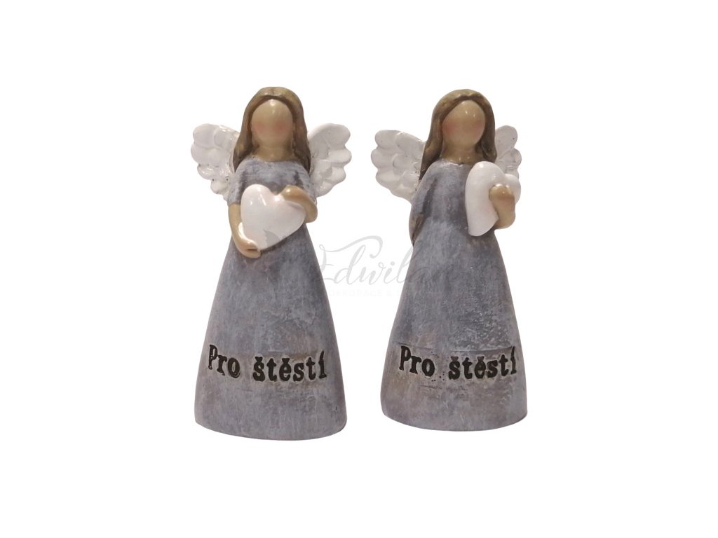 Anděl s nápisem ,,Pro štěstí'' je vyrobený z polystonu. Nabízíme v šedé barvě v sadě podvou kusech.
