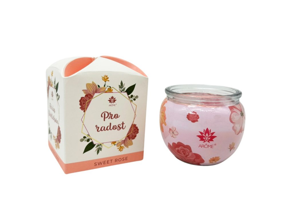 ARÔME Svíčka 90 g, ve skle a flower boxu, Pro radost, Sweet Rose