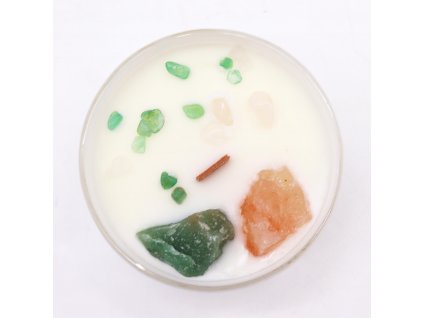 Když zapálíte svíčku, budete cítit léčivou energii krystalů a uklidňující vůni speciálně namíchané aroma. Po spálení této svíčky lze nádobu znovu použít a můžete vyčistit a ponechat skalní krystaly.