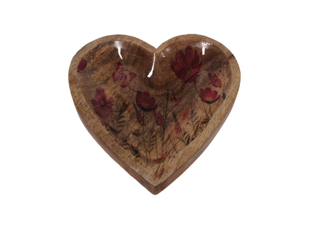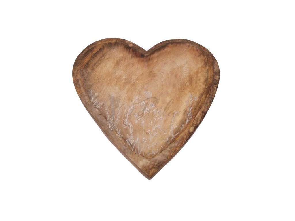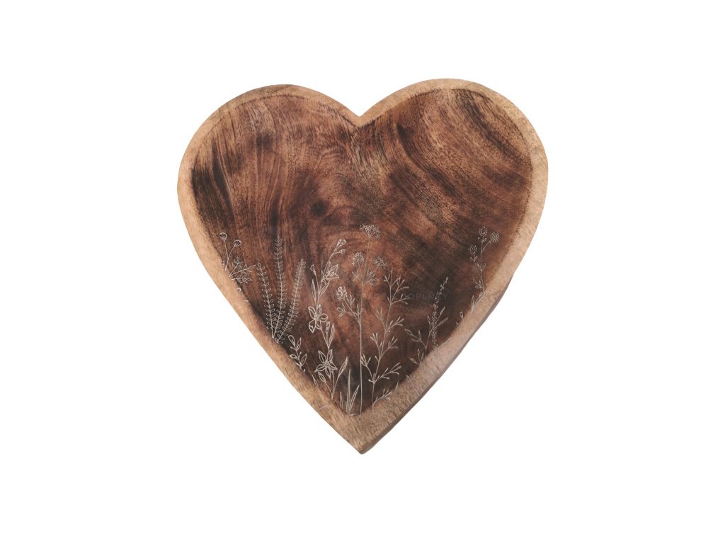 Dřevěná mělká miska srdce