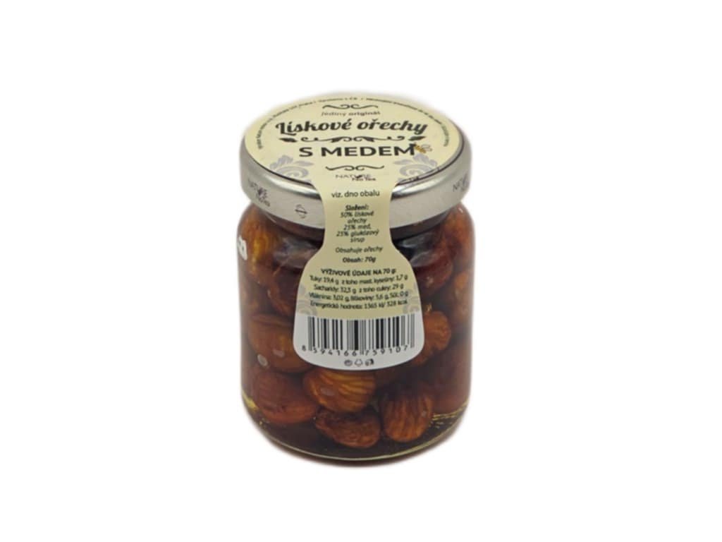 Složení: 50 % lískové ořechy, 25 % glukózový sirup, 25 % med