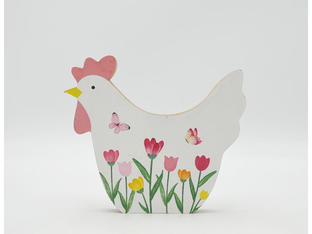 Slepice dřevo s potiskem tulipánů 15cm