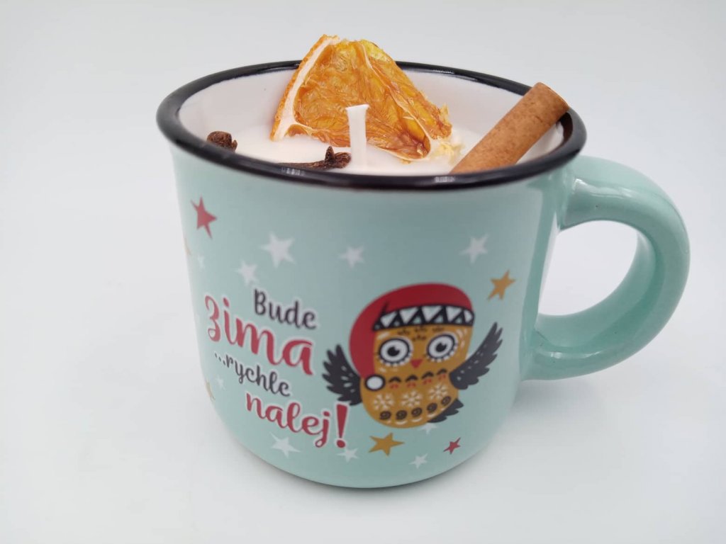 Složení/materiál: Sójový vosk, esenciální oleje, dekorace, hrneček