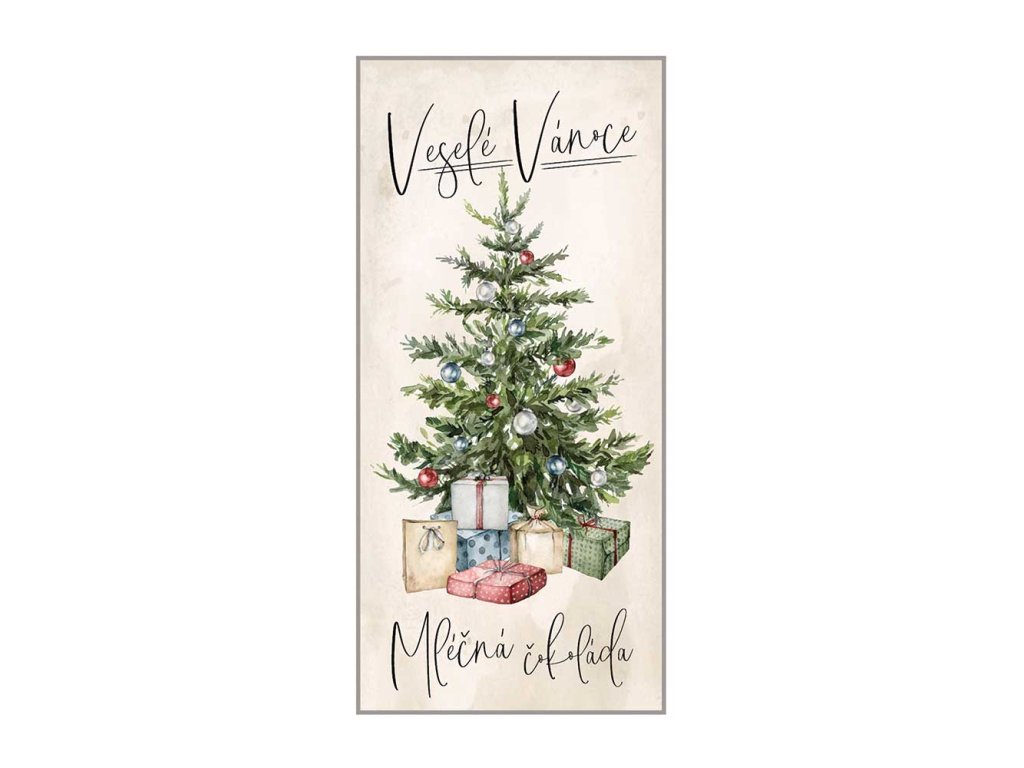 Sladký vánoční dárek pro vaše blízké, kamarády nebo kolegy. Dárková mléčná tabulková čokoláda s vánočním motivem – Veselé Vánoce.